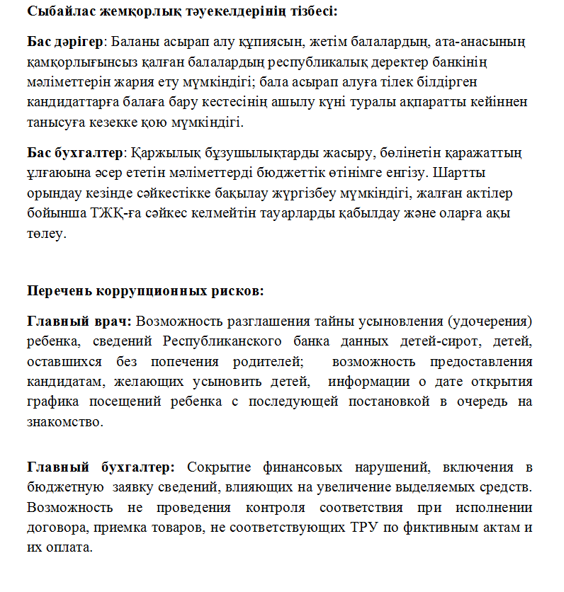 ПЕРЕЧЕНЬ КОРРУПЦИОННЫХ РИСКОВ